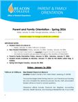 Parent and Family Orientation - Spring 2026 Friday, January 16, 2026, through Saturday, January 17, 2026